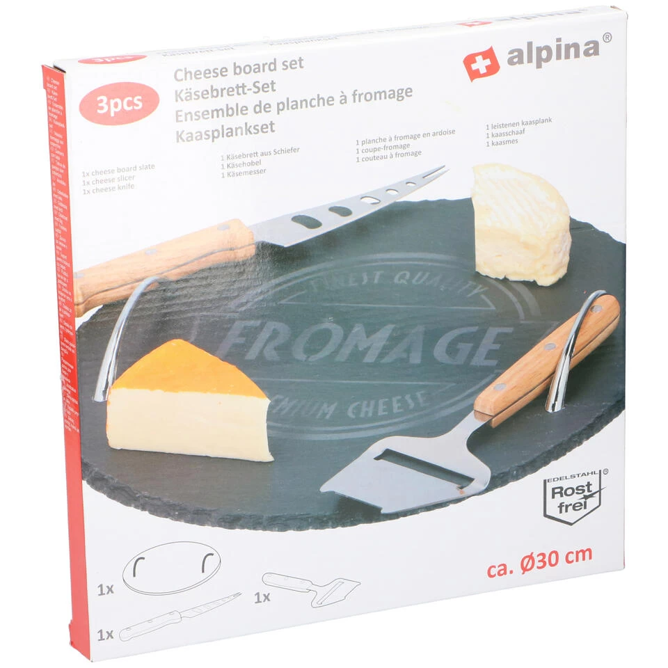 Deze serveerplank/kaasplank is gemaakt van leisteen en heeft een afmeting van 30cm. De plank is niet geschikt voor in de oven en vaatwasser. Aangeraden wordt te reinigen met theedoek en keukenolie voor behoud van de steen. Aan weerzijde zit een handvat. Deze set komt inclusief kaasmes en kaasschaaf.