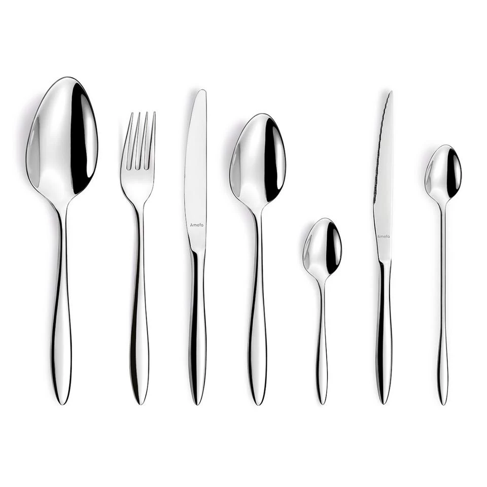 De spits toelopende handgrepen en soepele lijnen maken bestekset Ariane van Amefa een elegante verschijning. Het roestvrij staal met hoogglans afwerking geeft een tijdloze uitstraling die zich leent voor elke gelegenheid.