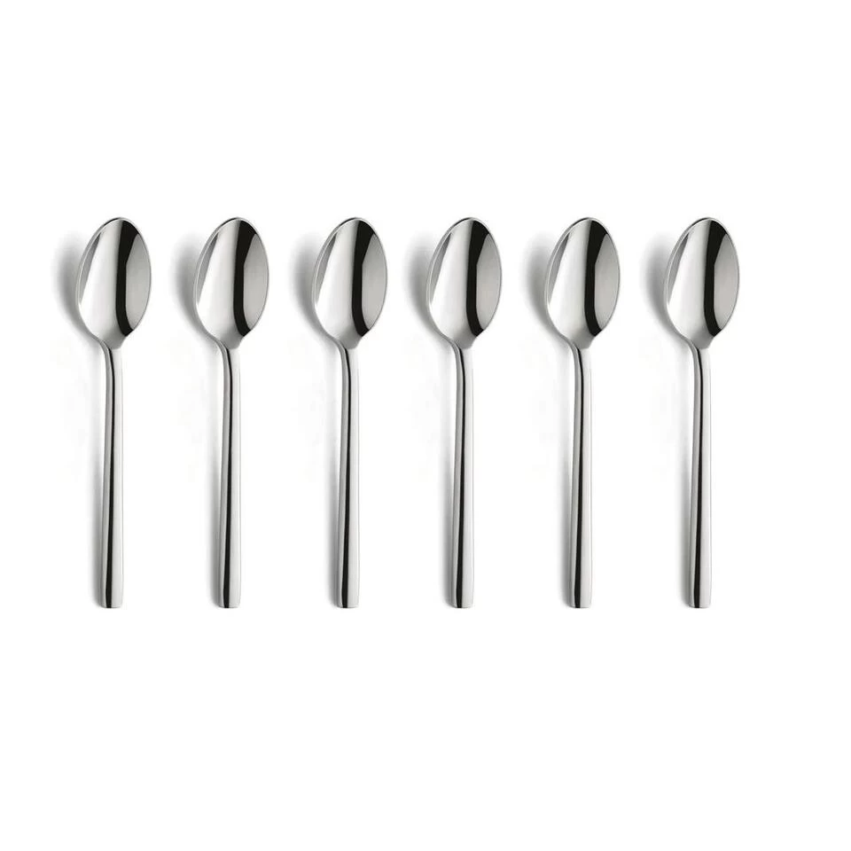 De Amefa Colorado is een model met eenvoudige, subtiele en elegante vormen en luxe uitstraling. Het Colorado model is gesmeed en één van de zwaardere modellen van Amefa en geeft een waar restaurant gevoel aan tafel. De theelepels hebben een hoogglans afwerking. Dit product bestaat uit de volgende onderdelen: – 6 theelepels in cadeauverpakking De lengte van de theelepel is 11,5 cm.
