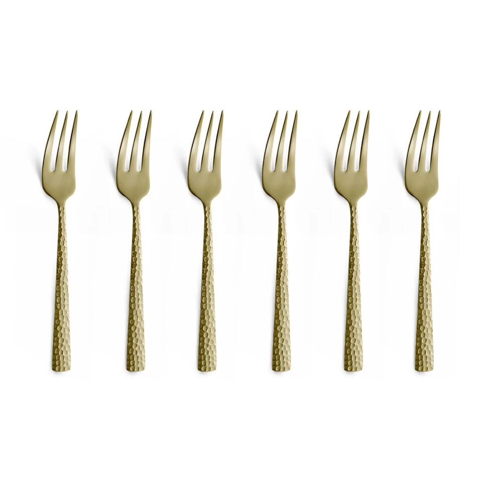 • 6 gebaksvorkjes <br><br>Dit bestek is gemaakt van de beste kwaliteit roestvrij staal en is afgewerkt met een dunne, voedselveilige titanium coating die zorgt voor een levendige kleur.<br><br>