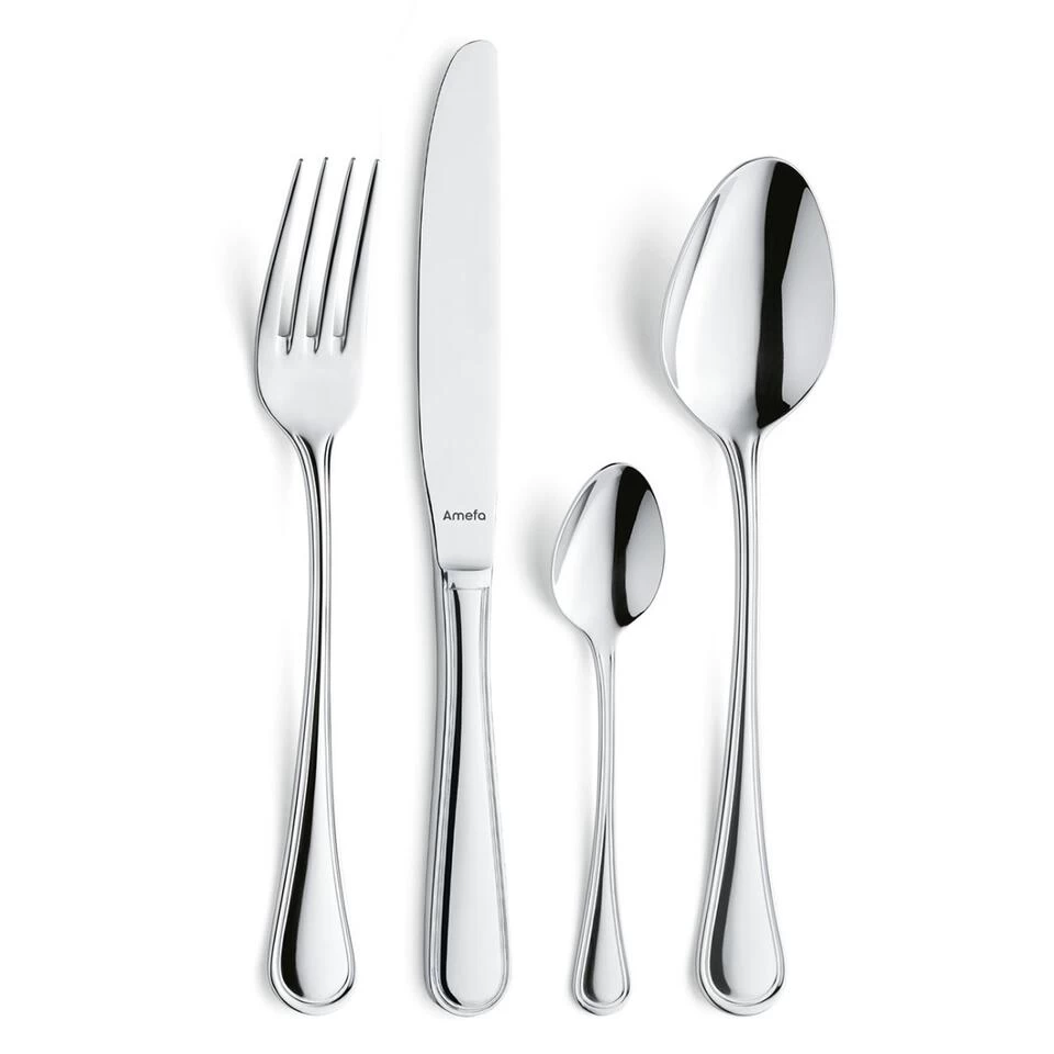 Haydn is een elegant model van Amefa dat perfect is voor chique gedekte tafels. Dit kwalitatief hoogwaardige model heeft een dubbele sierlijke en delicate decoratie rondom het gehele heft. Haydn bestek heeft een mooie hoogglans afwerking, wat zorgt voor een luxueuze uitstraling.