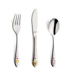 Deze 3-delige bestekset is speciaal gemaakt voor kinderen vanaf 3 jaar. De set bestaat uit een vork, mes en lepel, met een afbeelding van alles wat een echte prinses nodig heeft. De normaal scherpe delen van het mes en de vork zijn afgerond, zodat ze veilig te gebruiken zijn voor kinderen. Elk kind zal met deze set trots zijn op het eigen bestek en met plezier leren om zelf met bestek te eten.