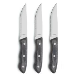 Deze drie robuuste steakmessen Hercule van Amefa hebben een extra breed lemmet en een extra groot heft, waardoor de messen comfortabeler en steviger in je hand liggen. Deze scherpe messen hebben een lemmet van roestvrij staal en houten heften. De fijn gekartelde rand biedt een soepele en gemakkelijke snijervaring. Bovendien is deze set vaatwasmachinebestendig en biedt het gebruikte 13/0 roestvrij staal een hoge corrosieweerstand. Of het nu gaat om ontbijten met familie, dineren met vrienden of een feestelijke barbecue, deze Amefa steakmessenset is een geweldige aanvulling op elke eetkamertafel!