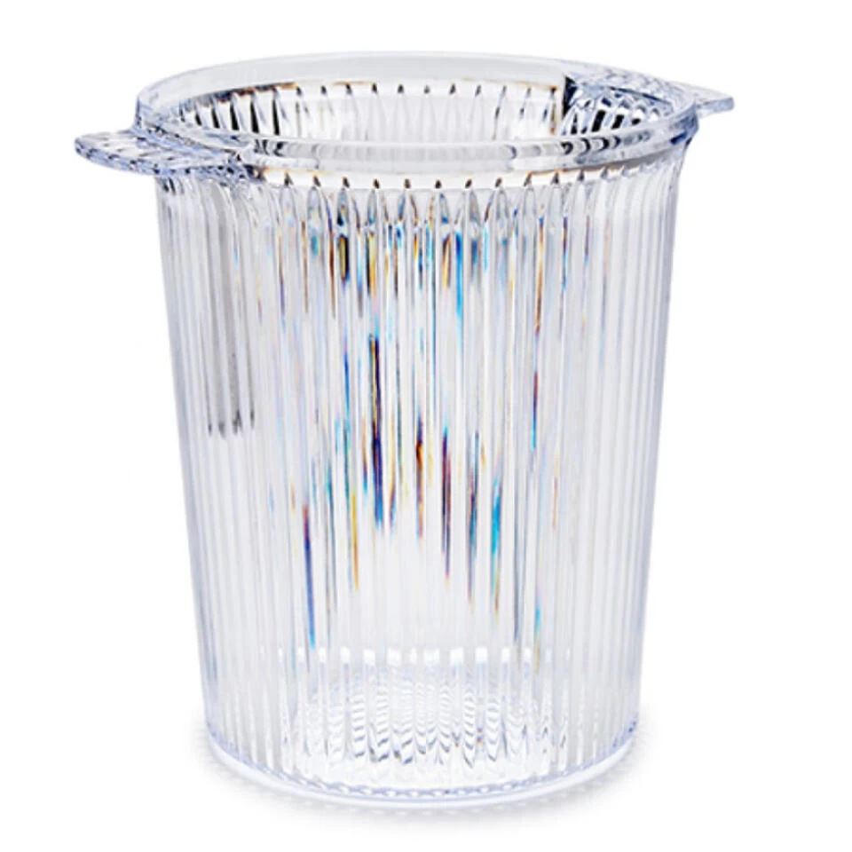 Kunststof champagnekoeler/ijsemmer transparant. Inhoud: 1 liter. Formaat: 21 x 17 x 17 cm. Zeer geschikt voor het koel/koud houden van champagne, bier en andere dranken.