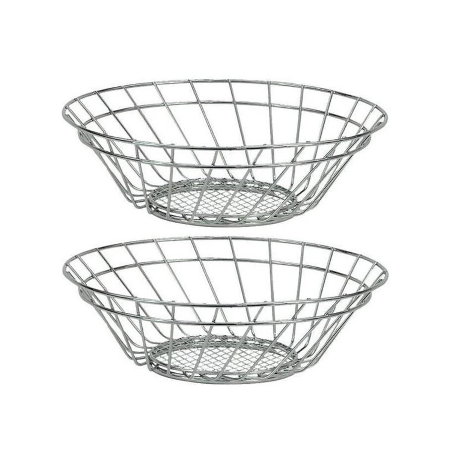 Metalen fruitmand/fruitschaal zilver rond groot 32 x 10 cm. De open rand/wand zorgt voor een constante luchtcirculatie waardoor het fruit minder snel overrijp is. Materiaal: metaal. Reinigen: afnemen met een vochtige doek.