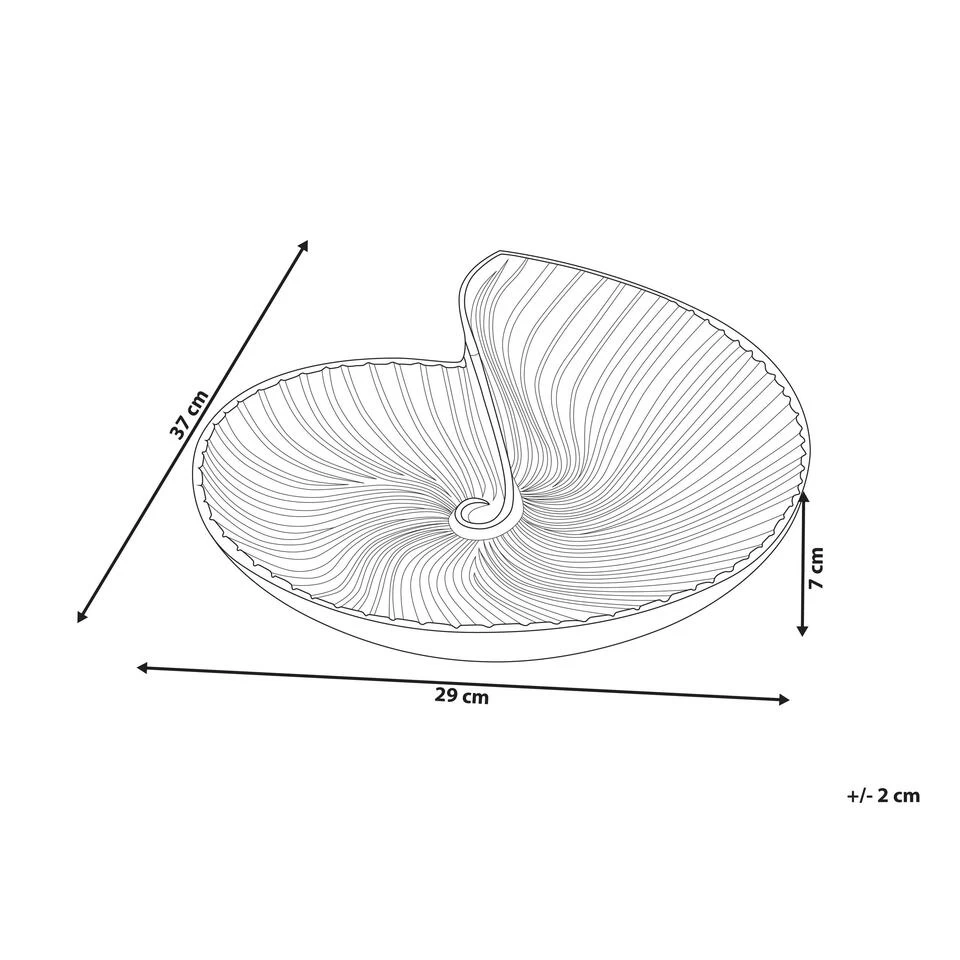 Handgemaakte, decoratieve schelp van goudkleurig metaal. Deze sieradenschaal in de vorm van een schelp is ideaal als aanvulling op maritieme woonconcepten en is bijzonder effectief op een consoletafel of salontafel. Het is geweldig voor het opbergen van kleine voorwerpen zoals sleutels, oorbellen, kleingeld, enz. Het stevige metalen dienblad met een reliëfpatroon zal zeker indruk maken met zijn duurzaamheid, lichtheid en duurzame kwaliteit. Zelfs als je geen deken op het tafelblad legt, zijn alle meubeloppervlakken altijd beschermd dankzij de drie vilten beschermers onder de schaal.