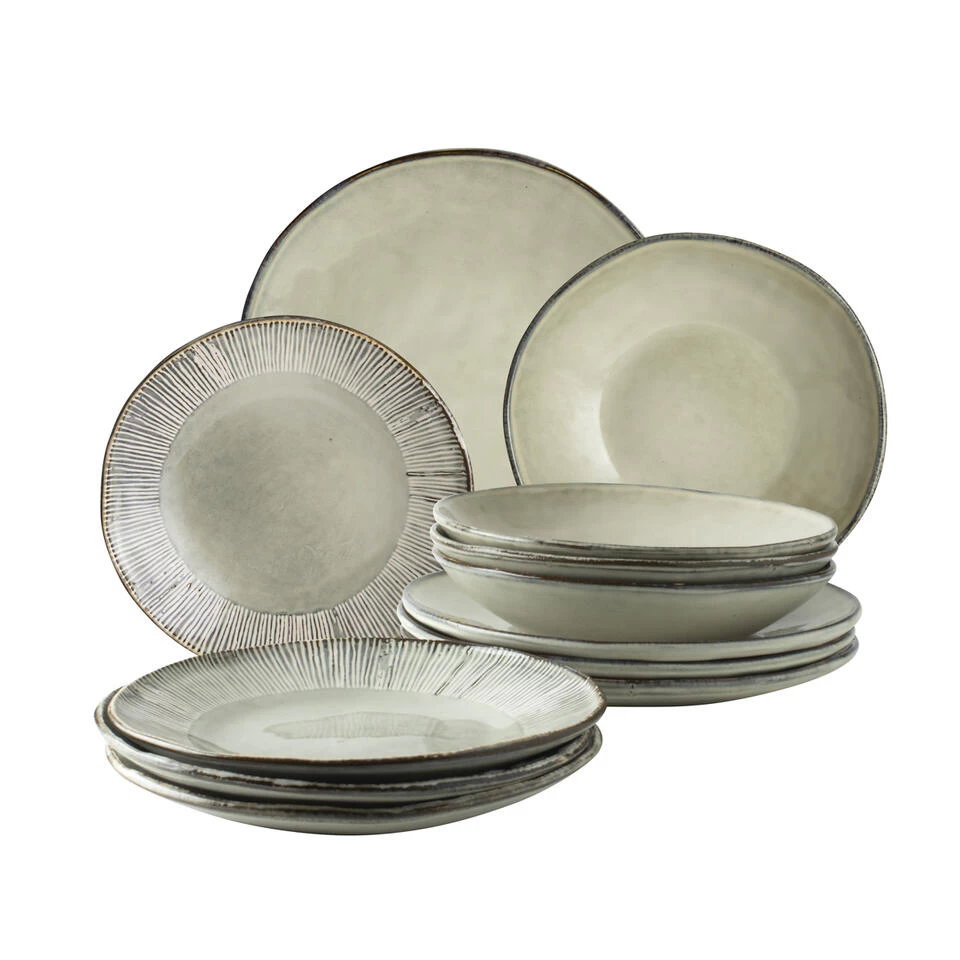 Nodig je vrienden uit en dek de tafel van je dromen met deze prachtige 12-delige bordenset, bestaande uit: