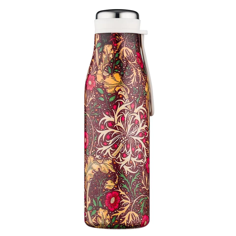 – Product: Ecoffee Cup Seaweed – Warm/Koud Dubbelwandige Thermosfles – 500 ml – William Morris – Donker Rood
