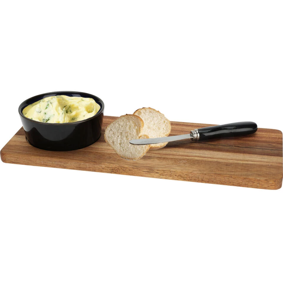 Serveerplank/borrelplank voor hapjes/saus/tapas keramiek donker blauw inclusief mesje. Serveer je gerechten met deze mooie set tijdens diner of borrel. Afmeting: ca. L 31 x B6 x H13 cm. Materiaal: keramiek/bamboe. Het aardewerk is vaatwasser bestendig. Merk: Excellent Houseware. Snack- en tapasschalen. Etenswaren bakjes, kommetjes, kleine schaaltjes.