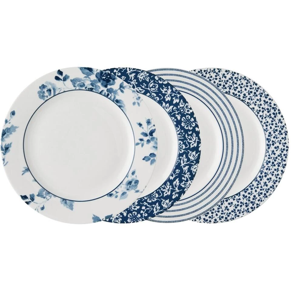 Ga met de tijd mee met deze set van 4 porseleinen borden uit de Blueprint Collectables van Laura Ashley en vrolijk je keukentafel op met verschillende designs. Alle prints hebben neacutet een ander luxe motiefje, maar bestaan wel uit dezelfde blauwtinten. Zo passen ze perfect bij elkaar en geef je je ontbijt-, lunch- of dinertafel een gezellige twist. Met een diameter van 23 cm passen er ook nog eens heel wat versgebakken broodjes of aardappeltjes op.