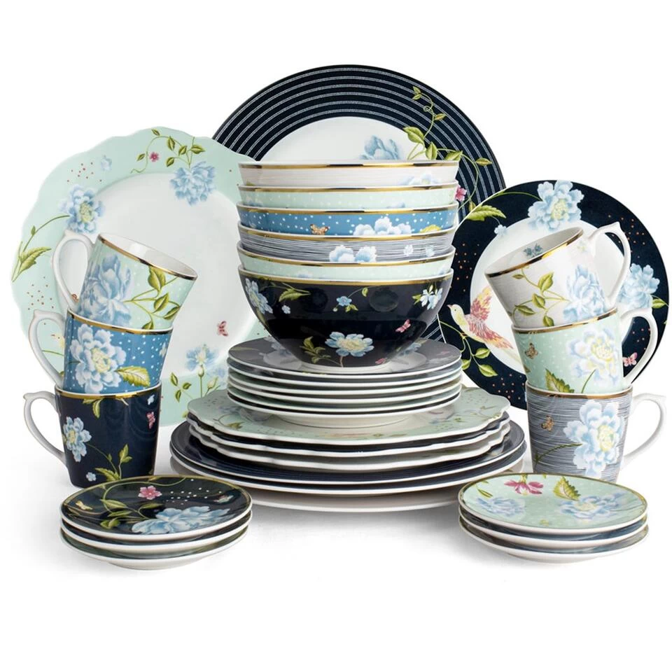 Deze porseleinen 36-delige serviesset is voor 6 personen en hoort bij de Laura Ashley Heritage Collectables-lijn. Elke mok, kom en elk bord bestaat uit diverse designs die prachtig met elkaar te combineren zijn. De romantische vintage jaren 50-stijl fleurt je eettafel helemaal op. Deze magnetron- en vaatwasserbestendige serviesset bestaat uit:
