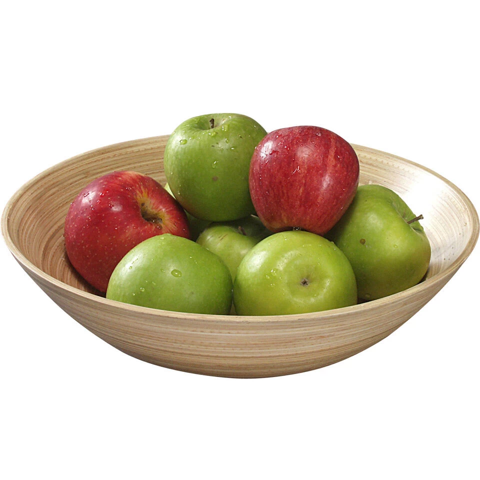 Bamboe houten fruitschaal/serveerschaal 30 x 9 cm. Ronde bamboe houten schaal voor het opdienen/serveren van bijvoorbeeld brood of salade, of het bewaren/presenteren van fruit.