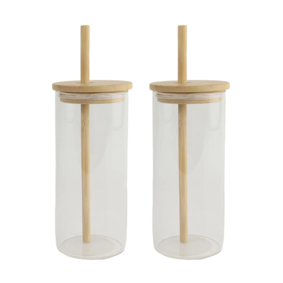 De Orange85 drinkglazen hebben een deksel waar een rietje door heen past. Hierdoor wordt het glas afgesloten maar kan er gelijker tijd gedronken worden. Dit is handig voor bijvoorbeeld in de zomer. De glazen worden per twee stuks geleverd en zijn gemaakt van glas en bamboe. De inhoud van de glazen is 400 ml en de afmetingen zijn: 7,1×6,5x20cm.
