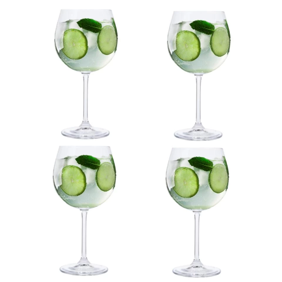 Luxe Gin Tonic glazen van Orange85. De ballonvorming laat de verschillende aroma’s perfect tot hun recht komen. De inhoud van de glazen is 620 ml. Ze zijn gemaakt van sterk glas en kunnen in de vaatwasser. Dit product wordt geleverd in een set van 4.