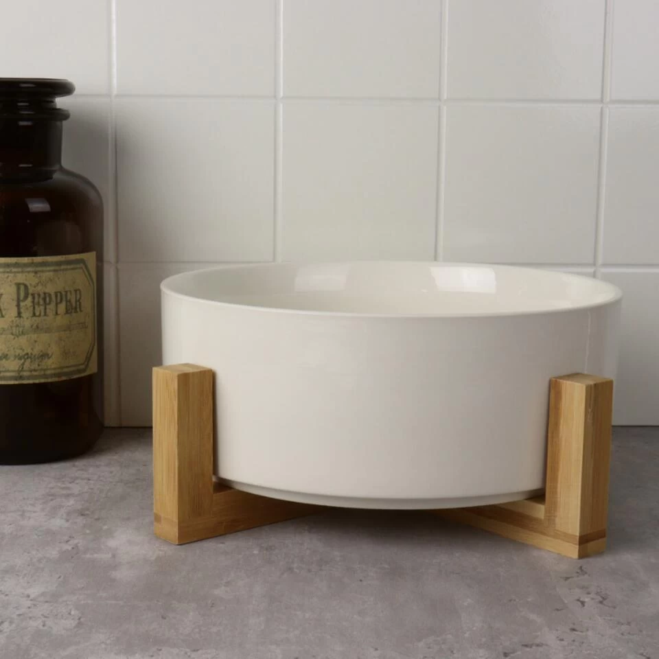 Orange85 Slakom Saladeschaal Saladecouverts Saladebestek Set Wit Bamboe