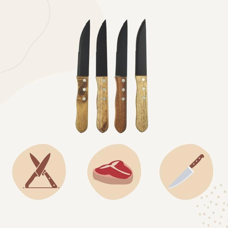 Orange85 Steakmessen Set Groot 4 Stuks Zwart 18x3x1.5 Cm Metaal Hout