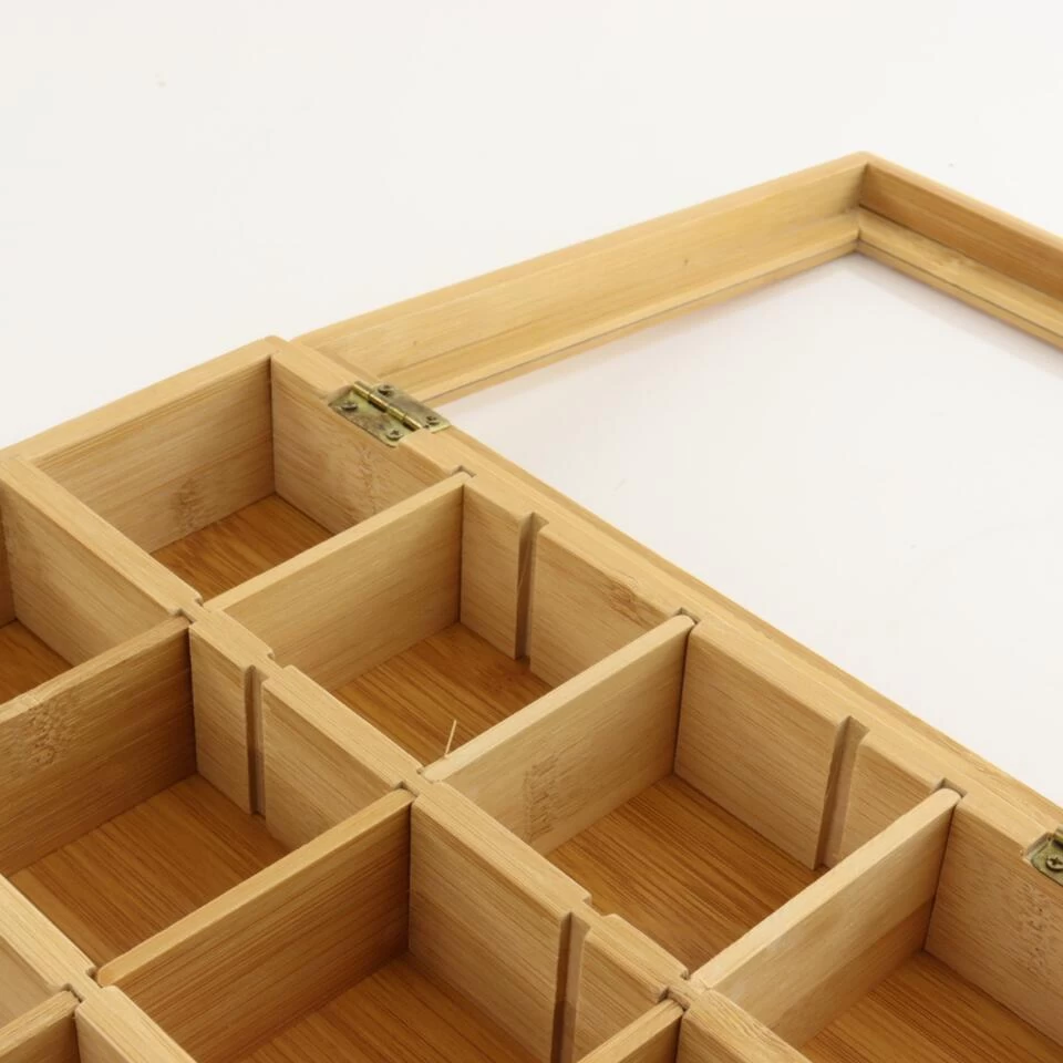 De theedoos van Orange85 is voorzien van maar liefst 12 vakken en een transparante display deksel. In combinatie met bamboe is deze theedoos een mooie aanwinst in de keuken. Wat deze theedoos zo uniek en ideaal maakt is dat de vakken uitneembaar en zelf in te delen zijn naar wens.