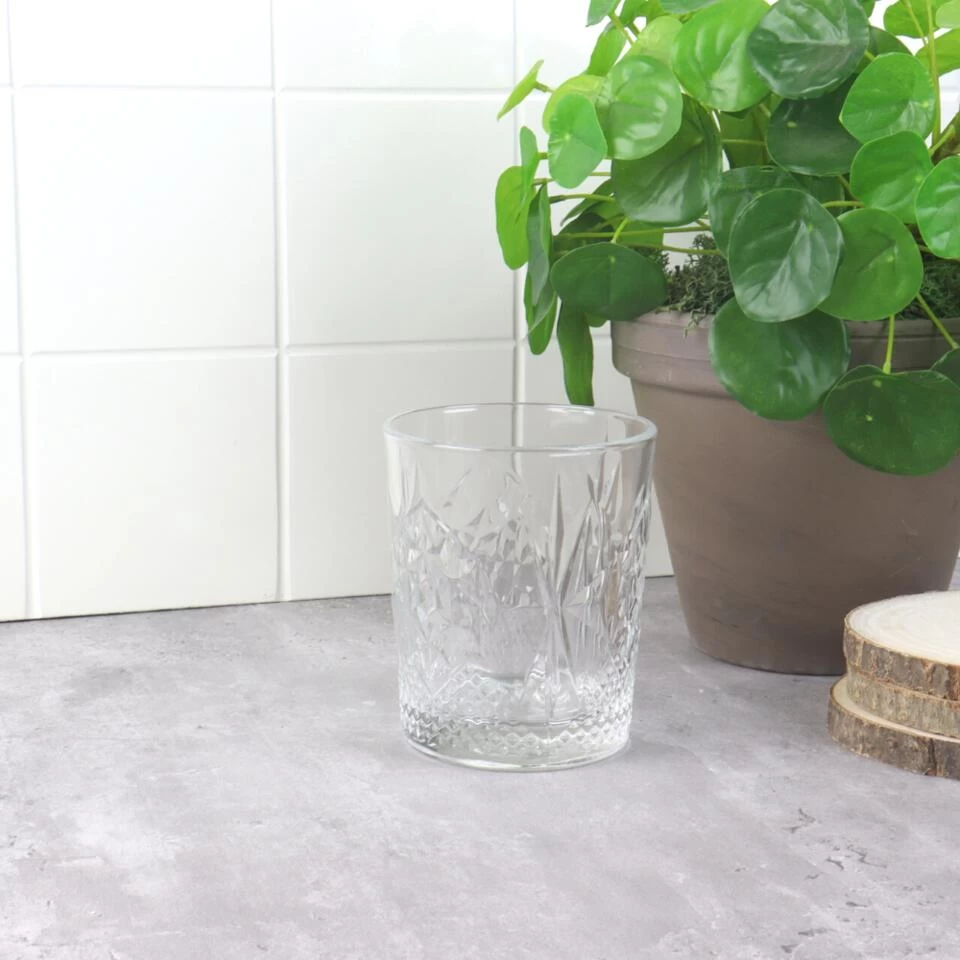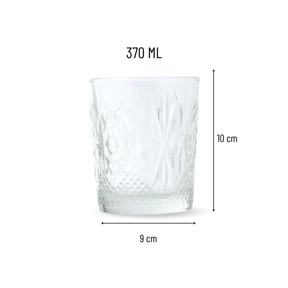 Deze Orange85 glazen zijn geschikt voor verschillende dranken. U kunt de glazen bijvoorbeeld gebruiken als waterglazen of als cocktailglazen. Het reliëf aan de zijkant van het glas geeft het glas een luxe uitstraling. In deze set zitten vier glazen met een inhoud van 370 ml. De glazen zijn eenvoudig op te bergen door ze te stapelen. De glazen zijn geschikt voor in de vaatwasser.