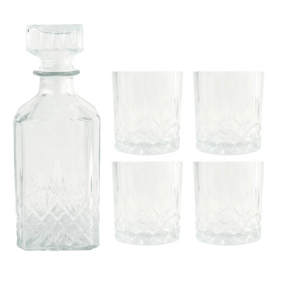 Orange85 Whisky Karaf Met 4 Glazen 5- Delig Transparant 900/230 Ml Glas Set