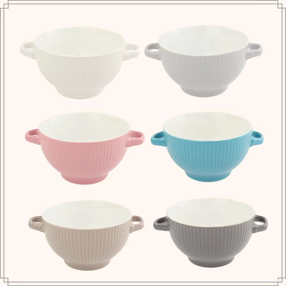 Deze soepkommen van OTIX zijn gemaakt van aardewerk. De soepkommen worden geleverd per 6 stuks. Elke kom heeft een inhoud van 680 ml. De kommen hebben aan beide kanten een oor. Hierdoor is het optillen van een kom gevuld met hete soep geen probleem. De kommen zijn geschikt voor in de vaatwasser.