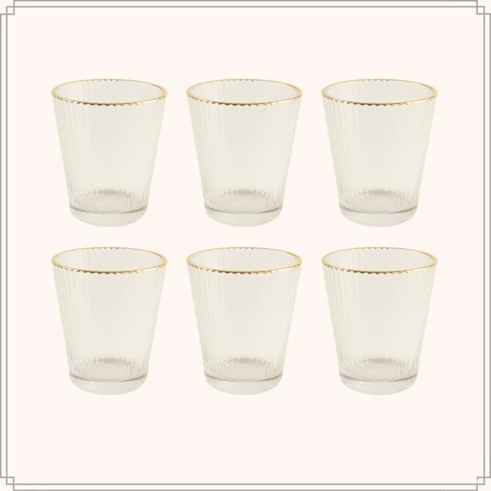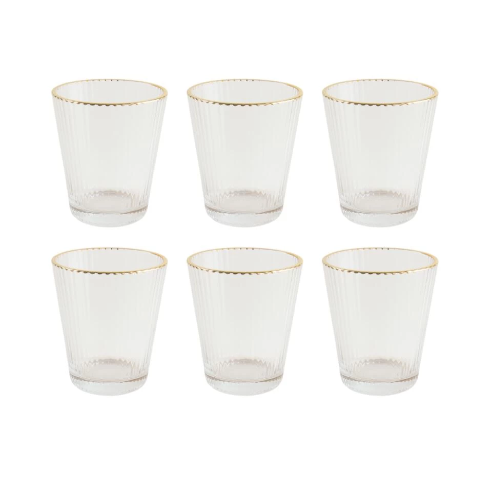 OTIX Waterglazen Set Van 6 Stapelbaar 350 Ml Met Gouden Rand Reliëf Ribbel