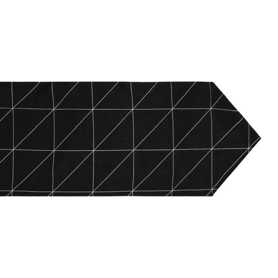 QUVIO Tafelloper – 200 X 30 Cm – Grafische Print – Katoen & Linnen – Zwart