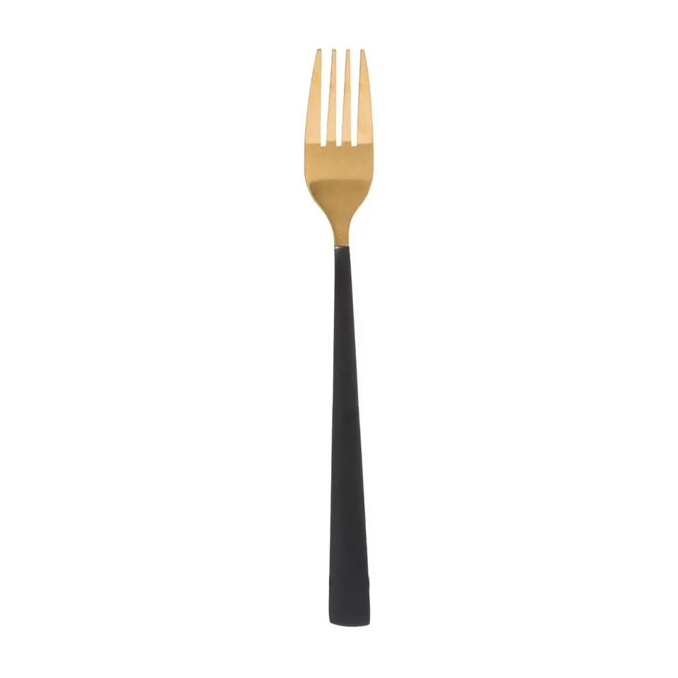 16-Delige bestekset Jungle Electro zwart/goud. Dek de tafel met deze trendy complete bestekset geschikt voor 4 personen. De set bestaat uit 4x messen, 4x vorken, 4x lepels en 4x koffie/theelepeltjes. Materiaal: RVS. Vaatwasserbestendig
