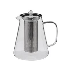 Theepot met filter voor losse thee/theezakjes van glas en rvs metaal. Bereid verse thee met deze glazen theepot met theefilter. De theepot is het beste te reinigen met handwas. Inhoud: ca. 1300 ml.