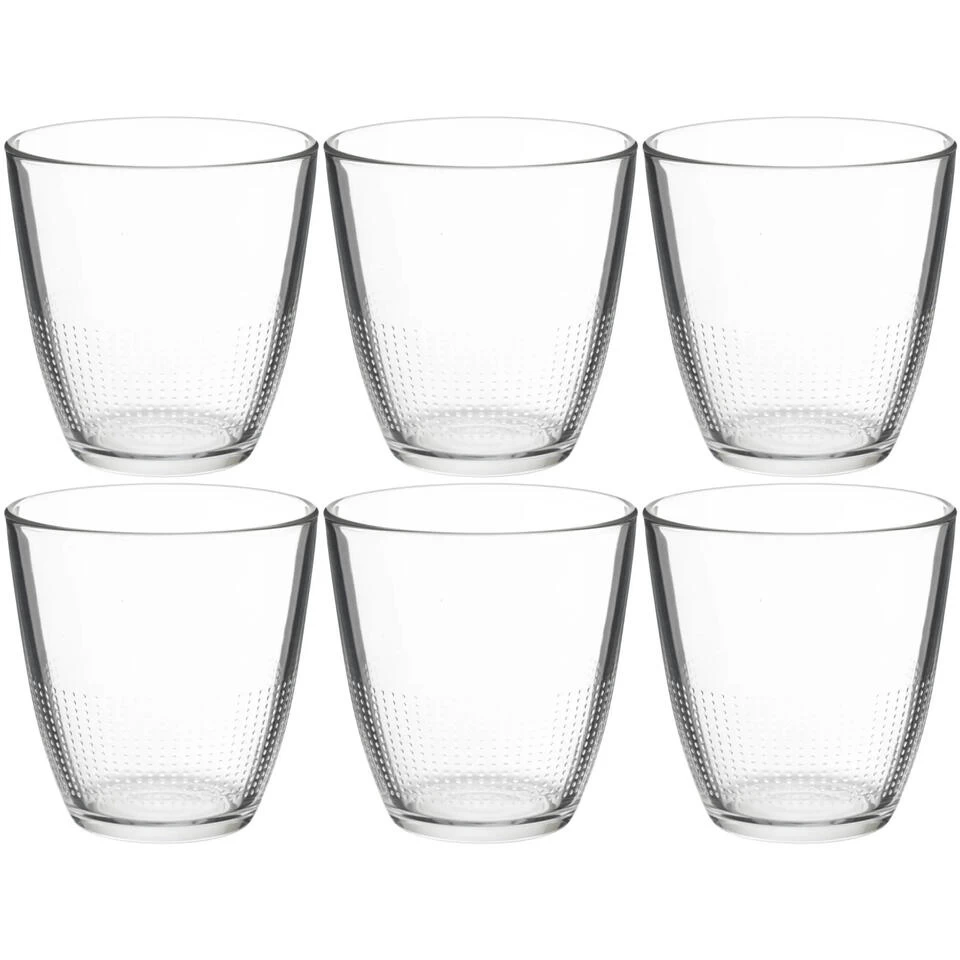 Set van 6x stuks water glazen 250 ml. Afmeting: ca. D8 x 8,5 cm, diameter onderkant ca. 6 cm. Inhoud: ca. 250 ml/25 cl. Gewicht per glas: ca. 165 gram. Materiaal: glas. Reinigen: vaatwasser geschikt. Serie: Claudi.