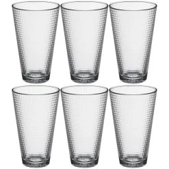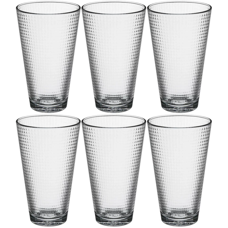 Set van 6x stuks water glazen 340 ml. Afmeting: ca. D8 x 13,5 cm, diameter onderkant ca. 5 cm. Inhoud: ca. 340 ml/34 cl. Gewicht per glas: ca. 300 gram. Materiaal: glas. Reinigen: vaatwasser geschikt. Serie: Benit.