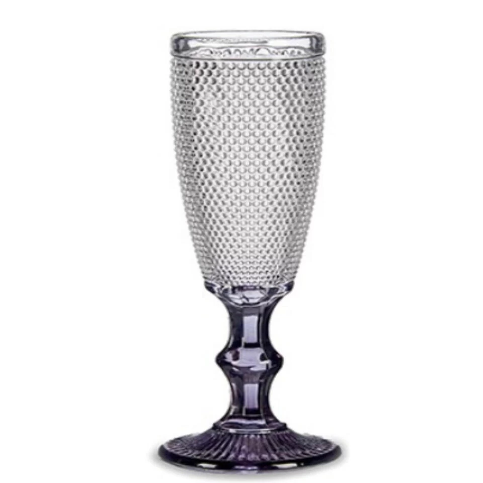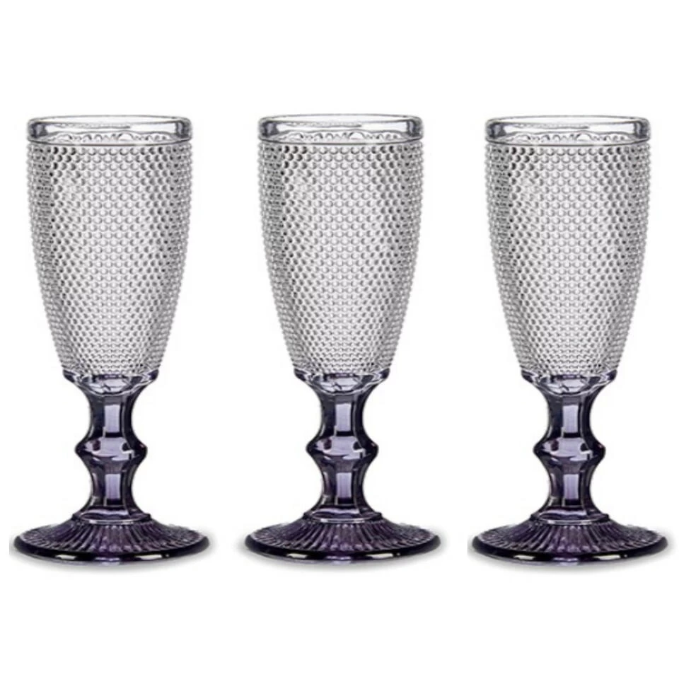 Luxe Monaco serie Cava of Champagneglazen set van 6x stuks op antraciet gekleurde voet 180 ml. Prachtige luxe uitstraling glazen collectie van Vivalto. De voet is antraciet gekleurd in het glaswerk, de bovenzijde is transparant. Formaat per glas 6.5 x 20 cm. Gemaakt van glas met schitterend relief in de glazen.