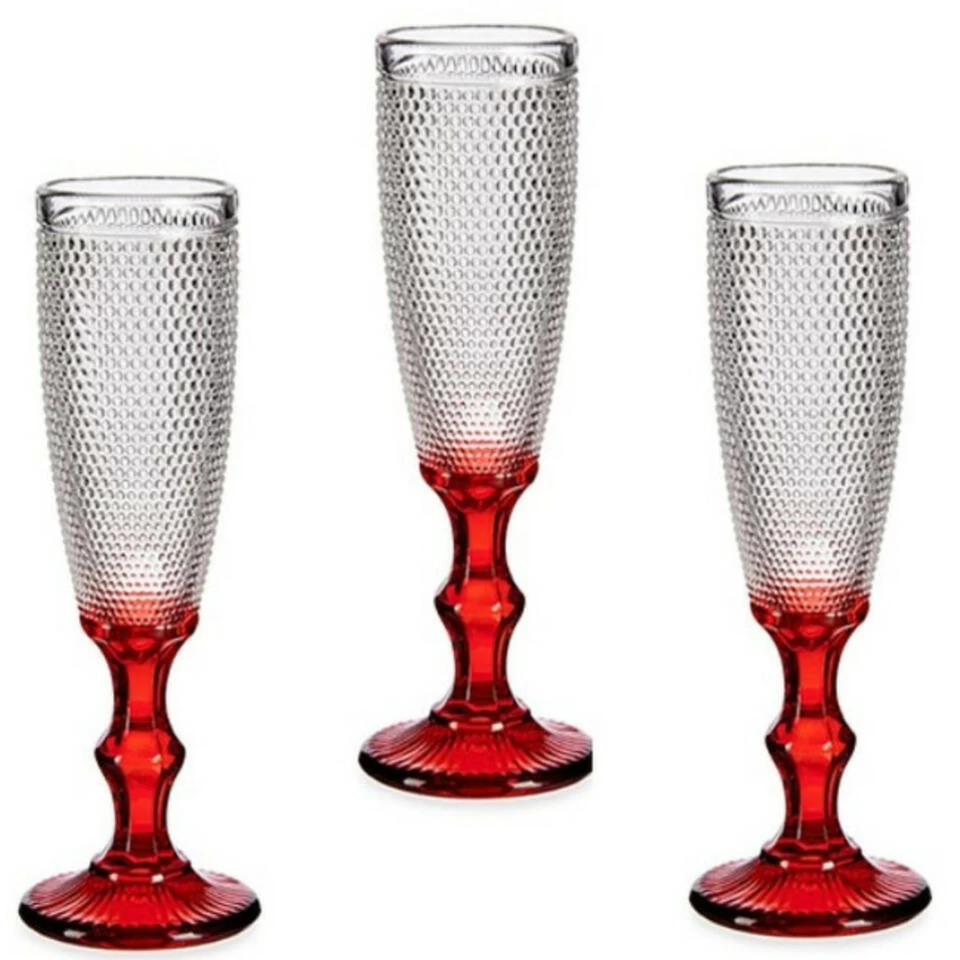 Luxe Monaco serie Cava of Champagneglazen set van 6x stuks op rode gekleurde voet 180 ml. Prachtige luxe uitstraling glazen collectie van Vivalto. De voet is rood gekleurd in het glaswerk, de bovenzijde is transparant. Formaat per glas 6.5 x 20 cm. Gemaakt van glas met schitterend relief in de glazen.