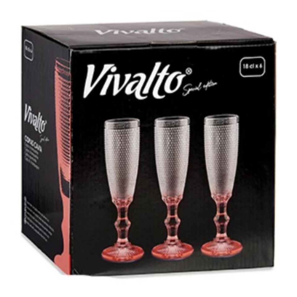 Vivalto – Luxe Champagneglazen Monaco Serie Set 6x Op Roze Voet 180 Ml