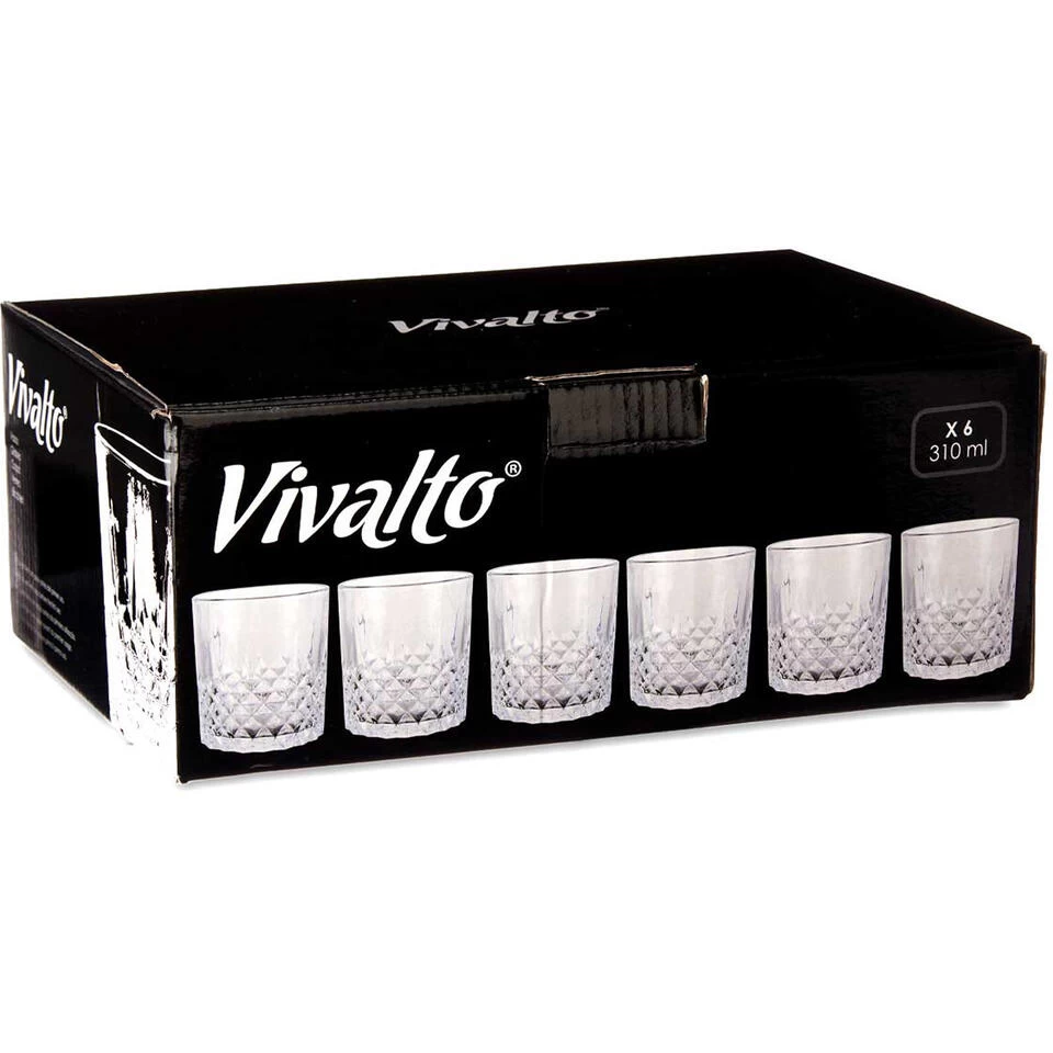 Vivalto Whisky Tumbler Glazen – 6x – Dandy Serie – Transparant – 310ml