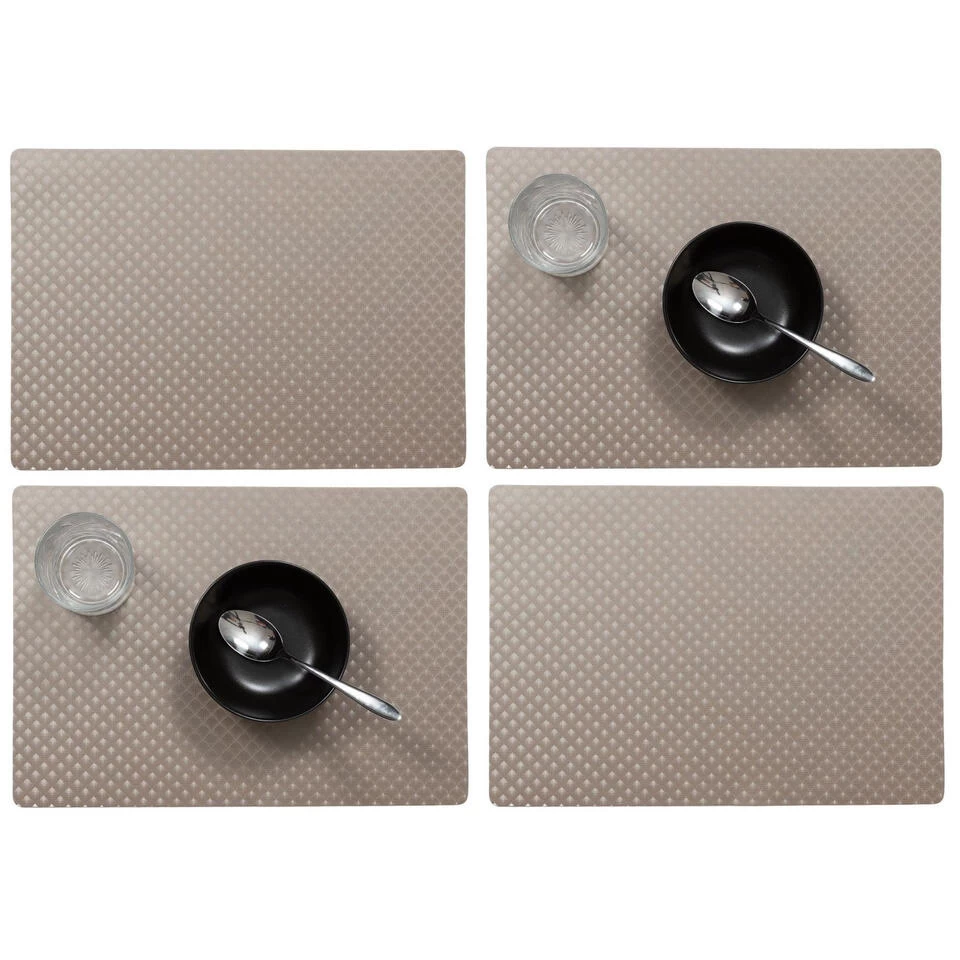 Stevige luxe Tafel placemats Zafiro taupe/grijs 30 x 43 cm. Met anti slip laag. Materiaal is katoen/polyester met PU coating. Goede water en vlek bestendigheid.