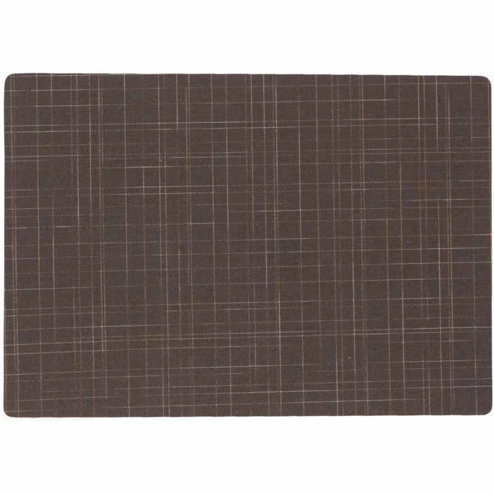 4x stuks stevige luxe Tafel placemats Liso bruin 30 x 43 cm. Met anti slip laag. Materiaal is katoen/polyester met Teflon coating. Goede water en vlek bestendigheid.