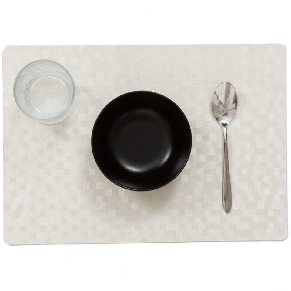 4x stuks stevige luxe Tafel placemats Stones wit 30 x 43 cm. Met anti slip laag. Materiaal is katoen/polyester met Pu coating. Goede water en vlek bestendigheid.