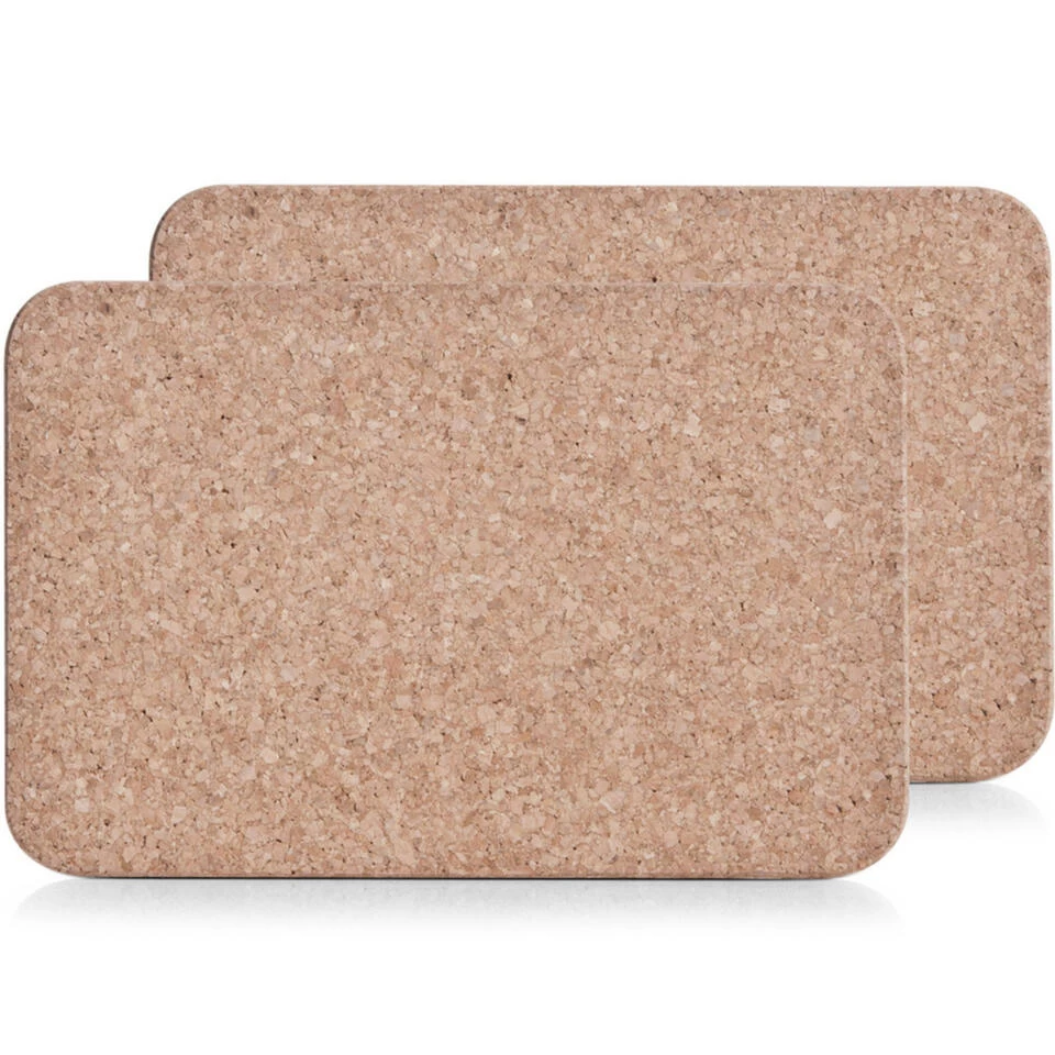 Afmeting: ca. 20 x 30 x 1 cm. Materiaal: kurk. Reinigen: Afnemen met een vochtige doek. Hittebestendig: ja, tot 210 graden. U ontvangt 1 verpakking met 2 stuks.